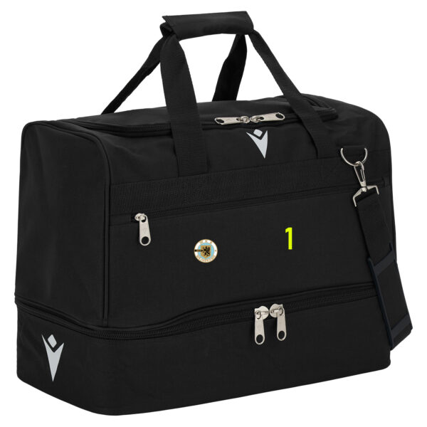 Torba Macron z logo Gryf Wejherowo i numerem zawodnika. Torba ma wymiary 52 x 44 x 31 cm oraz pojemność 70 L